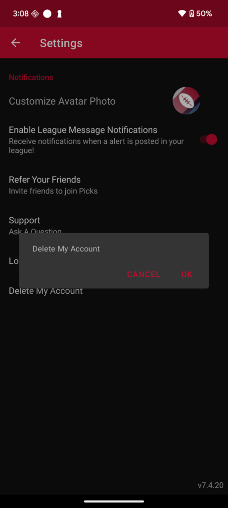 4. Look for an option Delete My Account.